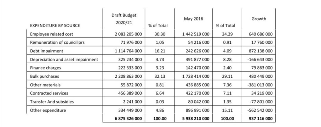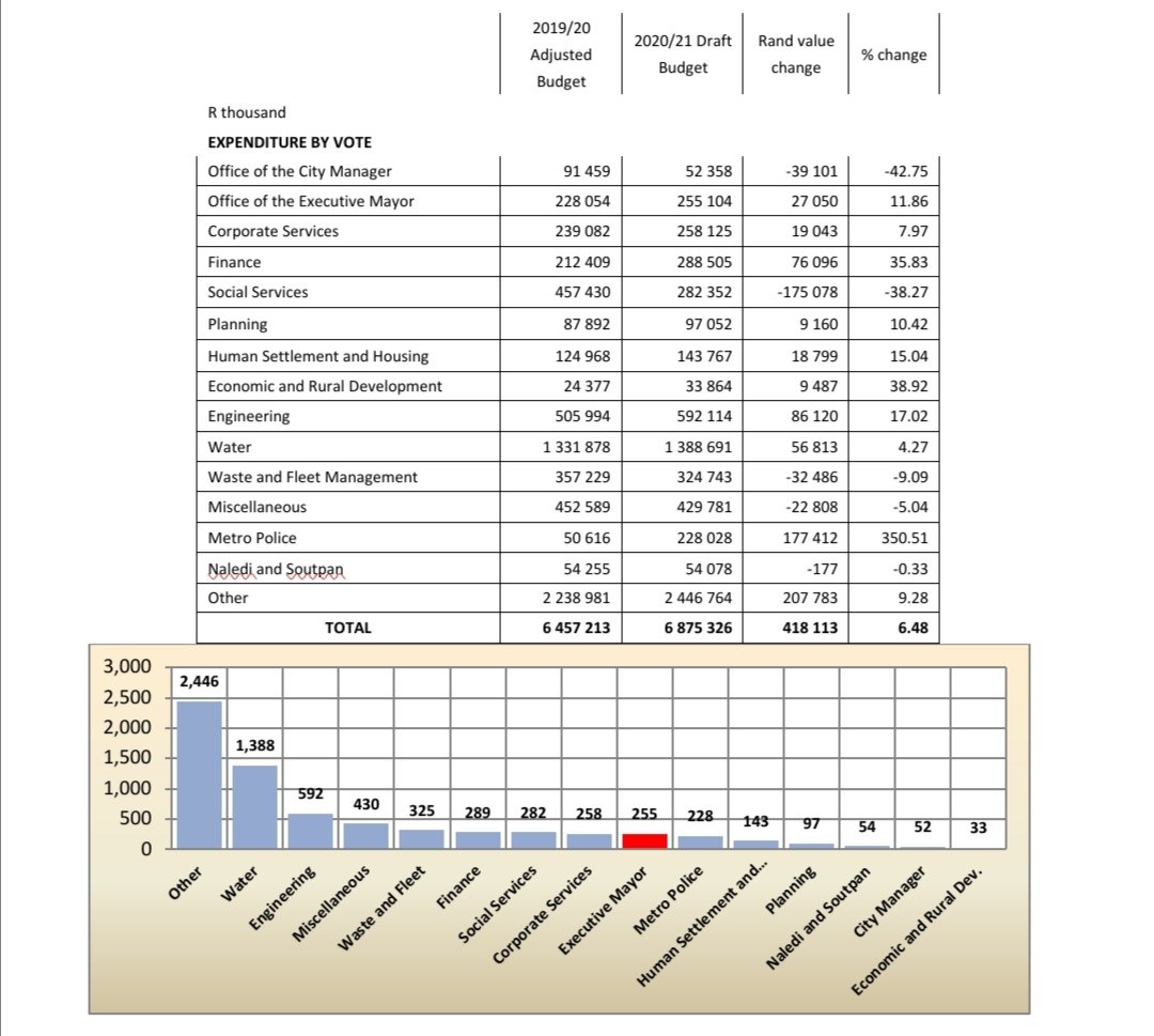 The Vote of the Executive Mayor is the first one that needs attention. This vote was inflated by creating political jobs for cadre employment and now the ratepayers most foot the bill.