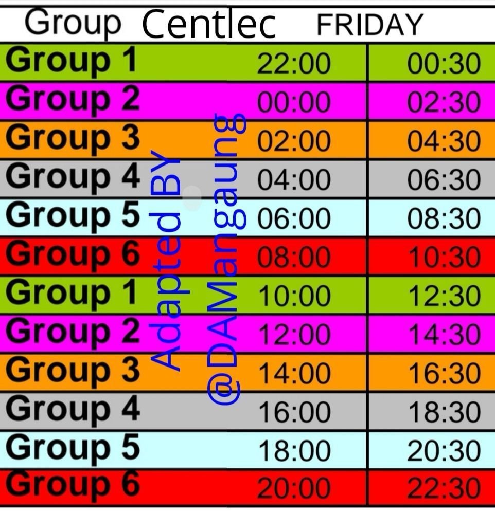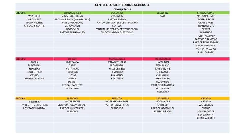 The above schedule is for Centlec customers in Mangaung. Eskom customers can use their app.