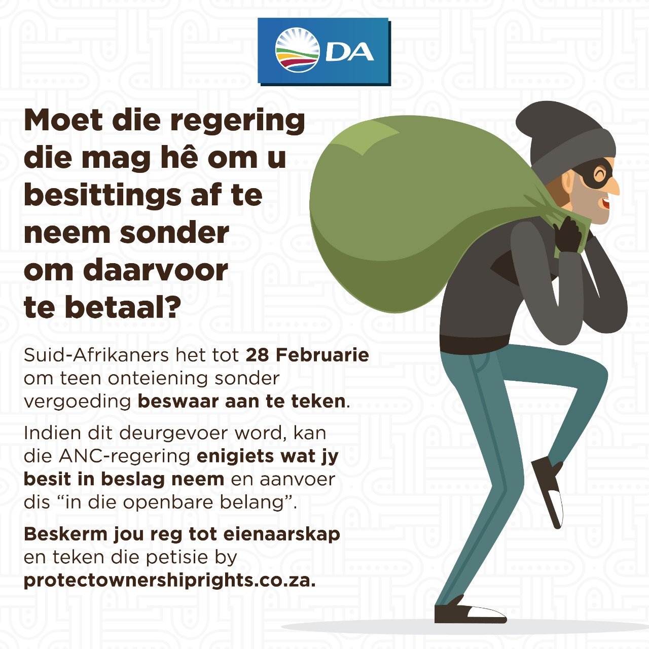 If the Expropriation Bill is allowed, the ANC government will be able to take anything you own and claim it’s of “public interest”.