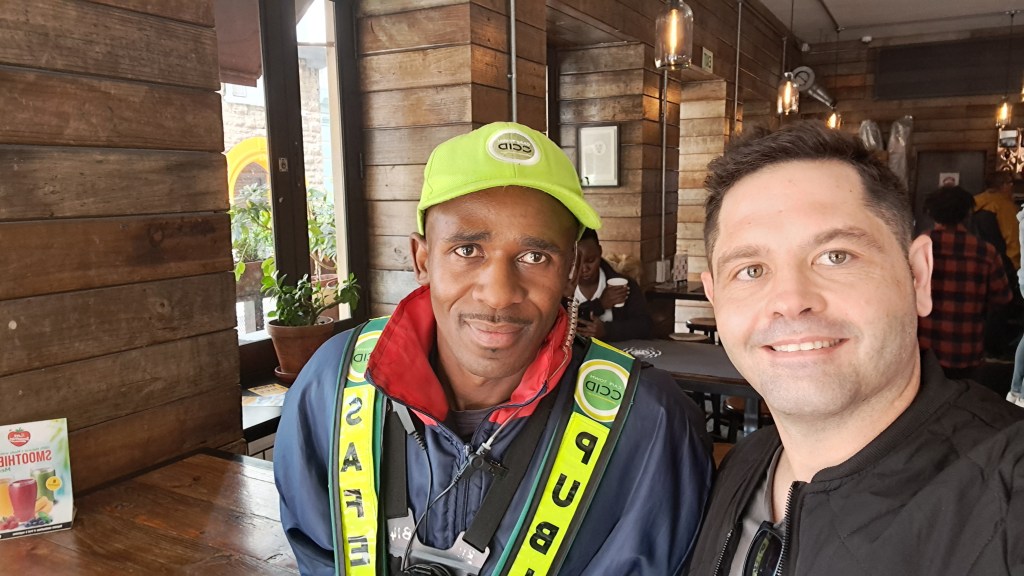 Photo taken by Mangaung councillor Tjaart van der Walt with CTCCID safety official in a coffee shop in a tourist hotspot on a visit to Cape Town in 2023